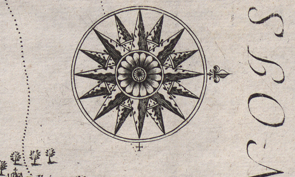 La rose des vents est une figure évoquant une fleur indiquant les point cardinaux et les directions intermédiaires comprenant de 4 à 32 directions.