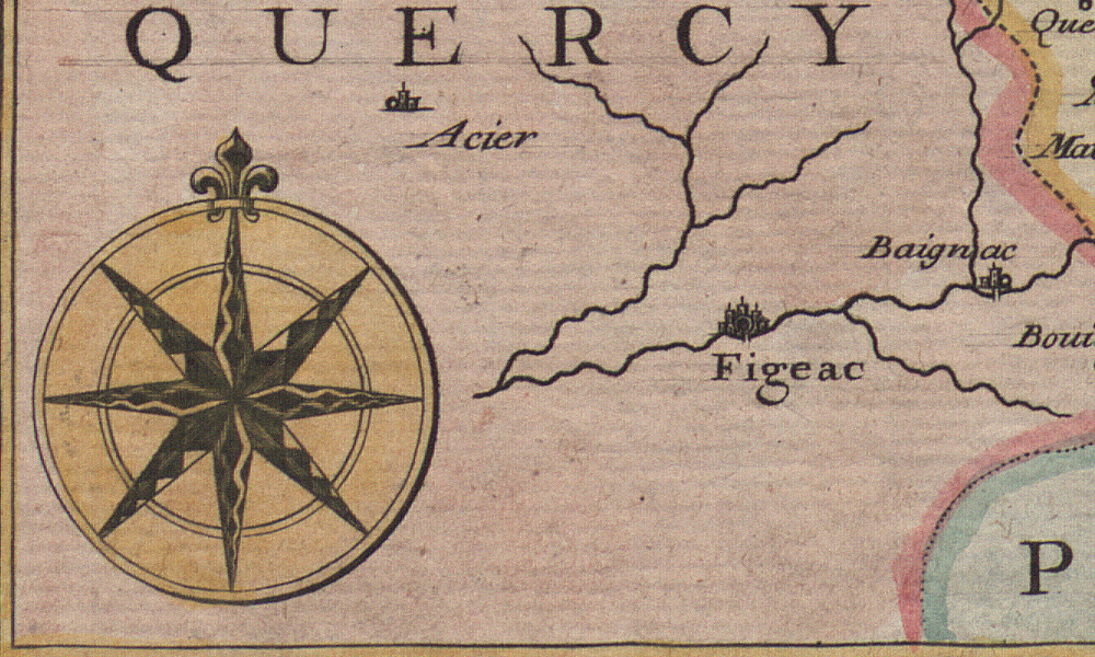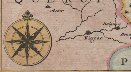 Sur les cartes anciennes, on rencontre pour les points cardinaux des synonymes qui sont peu usités aujourd'hui. Souvent abrégés, par une seule ou quelques lettres, il sont parfois difficilement compréhensibles. Les principaux termes rencontrés sont, pour le Nord : septentrion, tramontane ; pour le Sud : midi, méridional ; pour l'Est : aurore, levant, orient ; pour l'Ouest couchant, occident, ponant.