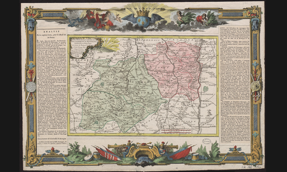 L'enluminure reste discrète dans les atlas français jusqu'au milieu du XVIIIe siècle, se bornant à un rôle informatif (soulignement des divisions politiques et administratives, contours de littoral, forêts en vert...). Dans la seconde moitié du XVIIIe siècle, l'édition cartographique française connaît un essor avec la production d'atlas et un renouveau de l'enluminure, avec des éditeurs comme Dezauche ou Desnos.